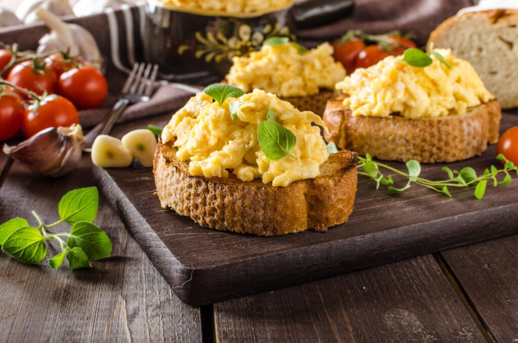 - Add eggs. Using a silicone spatula or wooden spoon, gently push the set eggs from the edges of the pan to the centre to create a large silky curd.